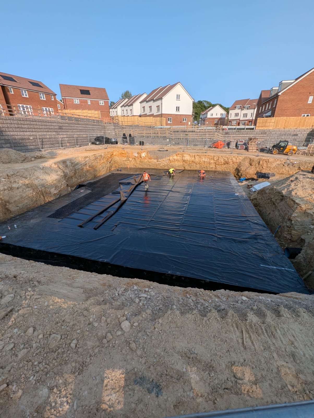 Installation of stormwater drainage systems and attenuation infrastructure to support the expanded footprint and mitigate flood risk across the site.